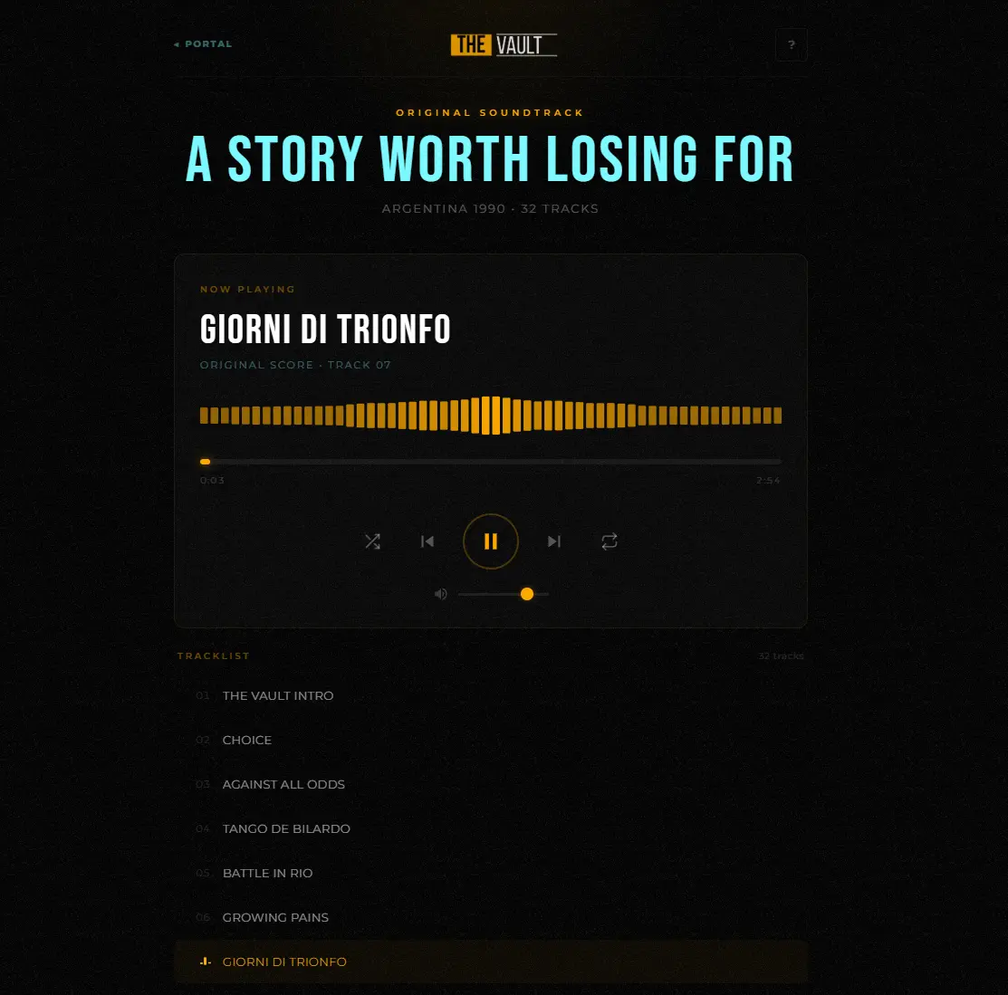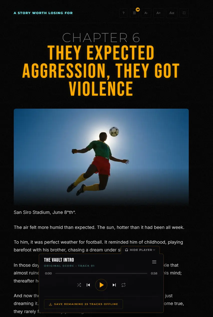 The Vault is a cinematic multimedia platform that retells the most important moments in football history through three interconnected formats: an illustrated novel, a video saga, and an original soundtrack.